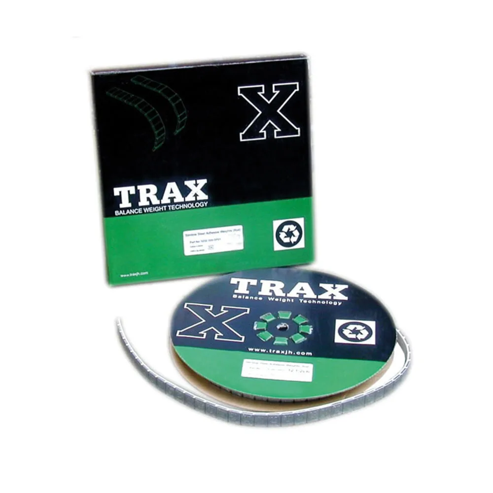 Trax Kleefgewicht type 605E, hoge kwaliteit stalen kleefgewicht op rol van 1000 x 5 gram voor personenwagen velgen.Met zijn zilveren kunststof coating...