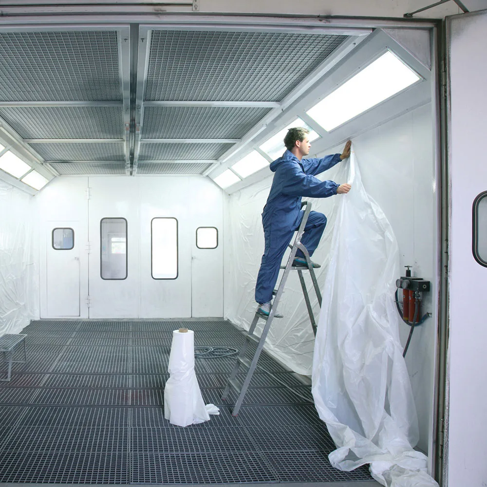 Horn & Bauer Verfhechtende cabinefolie met plakband, om cabinewanden te beschermen tegen verfnevel.Opgevouwen tot 40cm, daarna uit te vouwen tot 250cm...