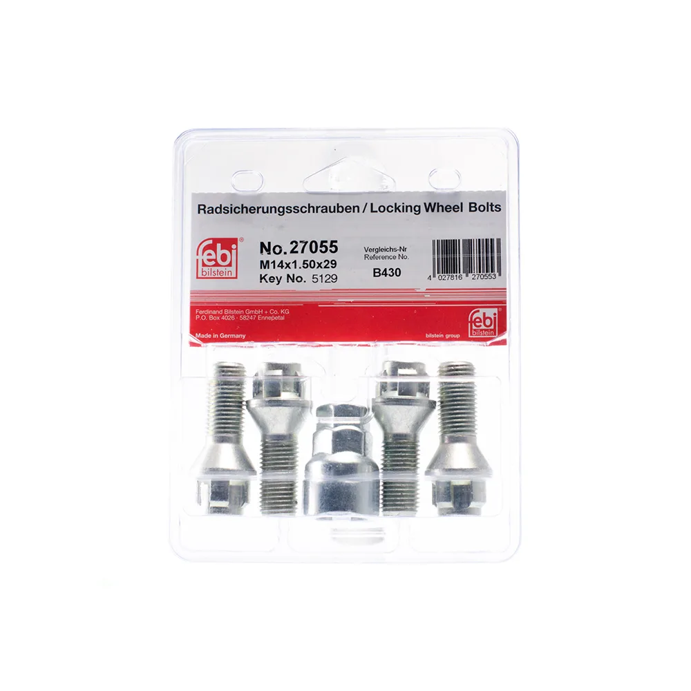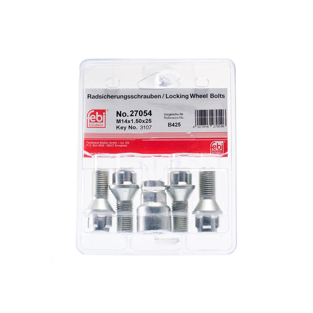 Eco-line Slotboutenset voor personenwagen.Lengte 51mm.Buitendraad M14x1.5mm.Draadlengte 25mm.Sleutel 17mm.Sleutel 19mm.Conisch zadel F.Verchroomd.voor...