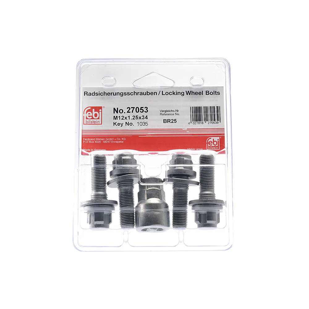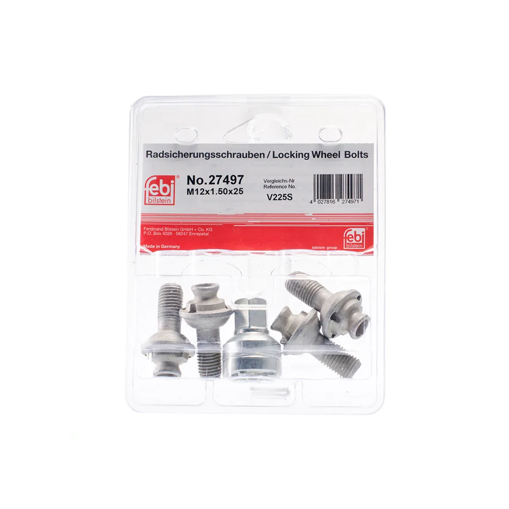 Eco-line Slotboutenset voor personenwagen.Lengte 57mm.Buitendraad M12 x 1.25mm.Draadlengte 34mm.Sleutel 17mm.Sleutel 19mm.vlakzadel.Verchroomd.vooras....