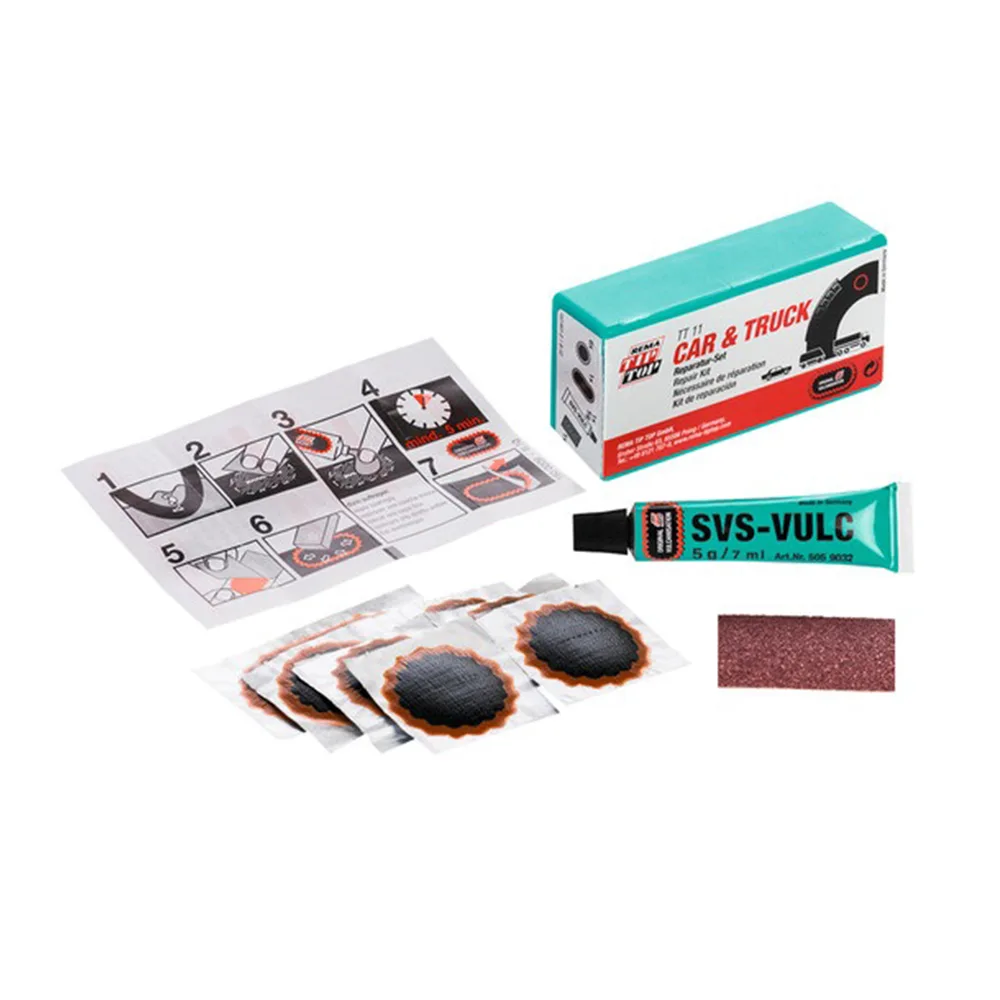 Rema Tip Top Reparatieset TT11 SB Handige set met ophangclip voor reparaties aan binnenbanden van personenwagens en vrachtwagens. De set bestaat uit: ...