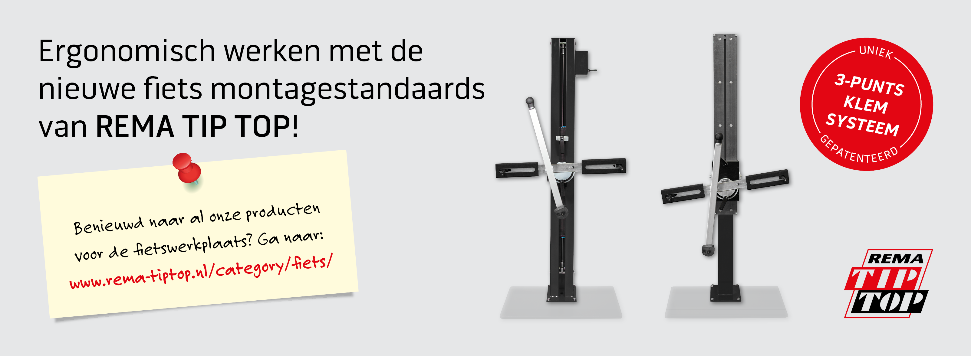 REMA TIP TOP - heeft zijn assortiment voor de fietswerkplaats verder uitgebreid. Met twee unieke fiets montagestandaards van REMA TIP TOP kan het werk in de fietswerkplaats nu nog eenvoudiger en sneller worden uitgevoerd.