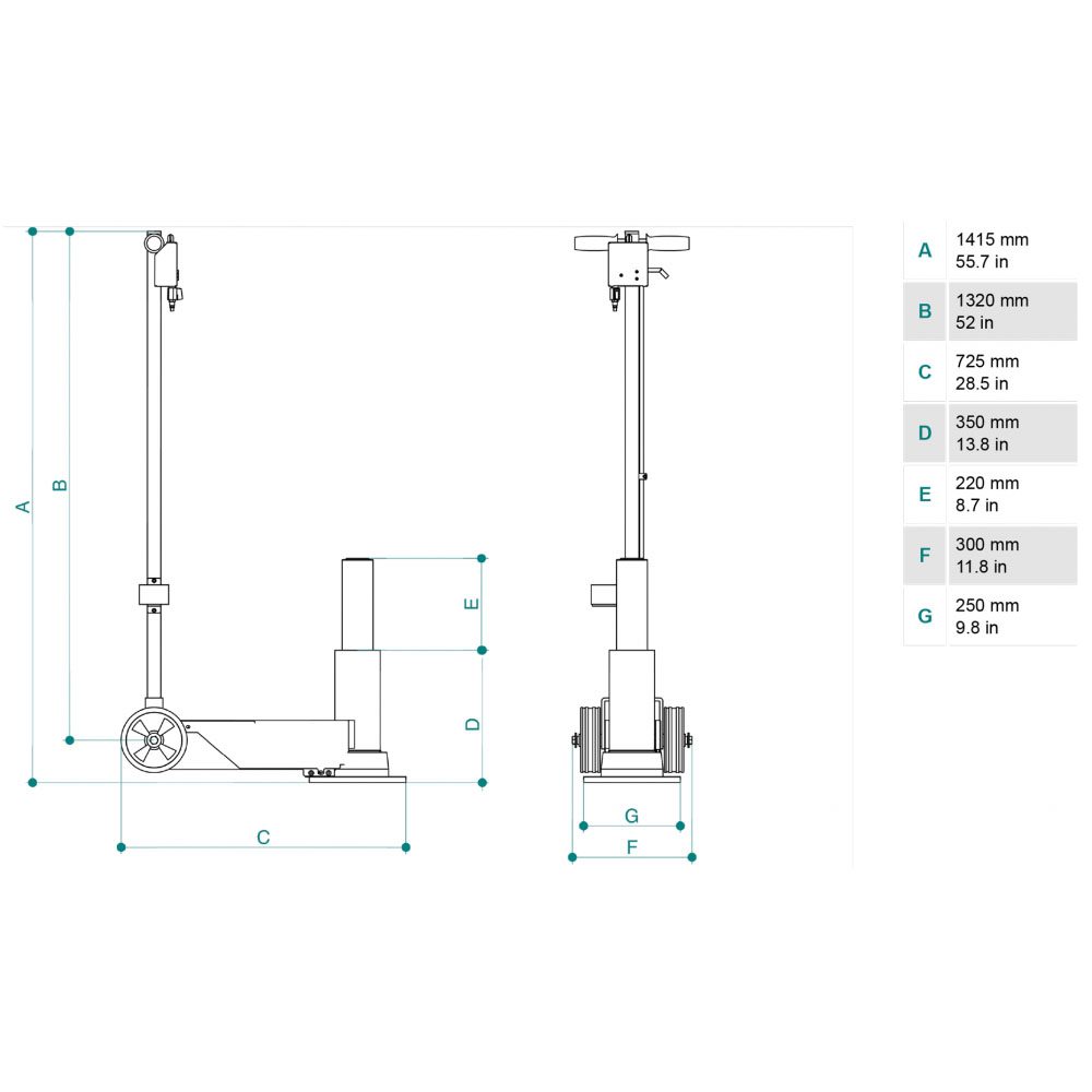 Cattini Lucht/hydraulische 30-tons krik voor zware voertuigen, zoals tractoren, earthmovers en hijskraken.