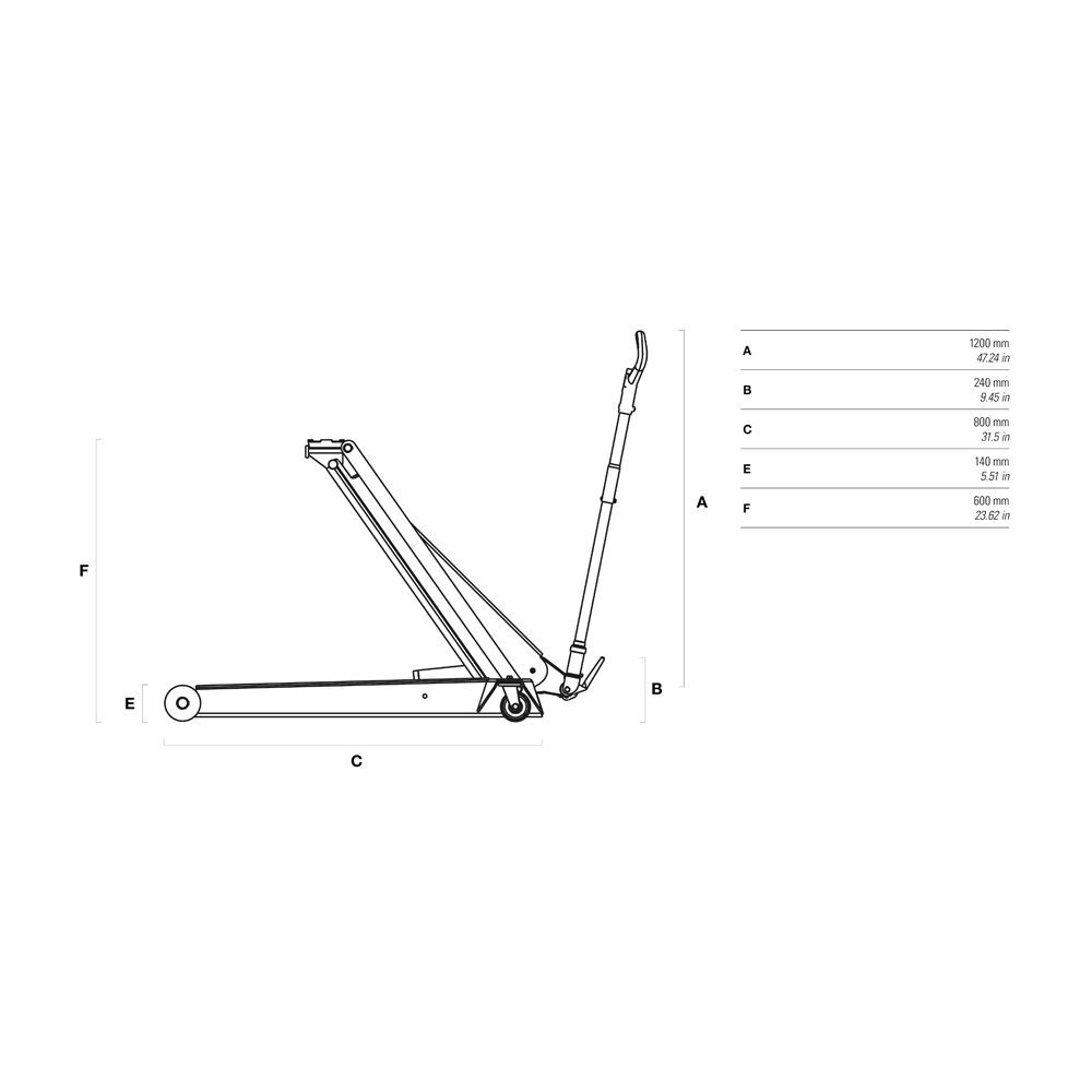 Met een minimumhoogte van 140mm kan deze krik vanaf een zeer lage positie handmatig omhooggekrikt worden. Uitgevoerd met een breed en robuust frame van zeer sterk staal.