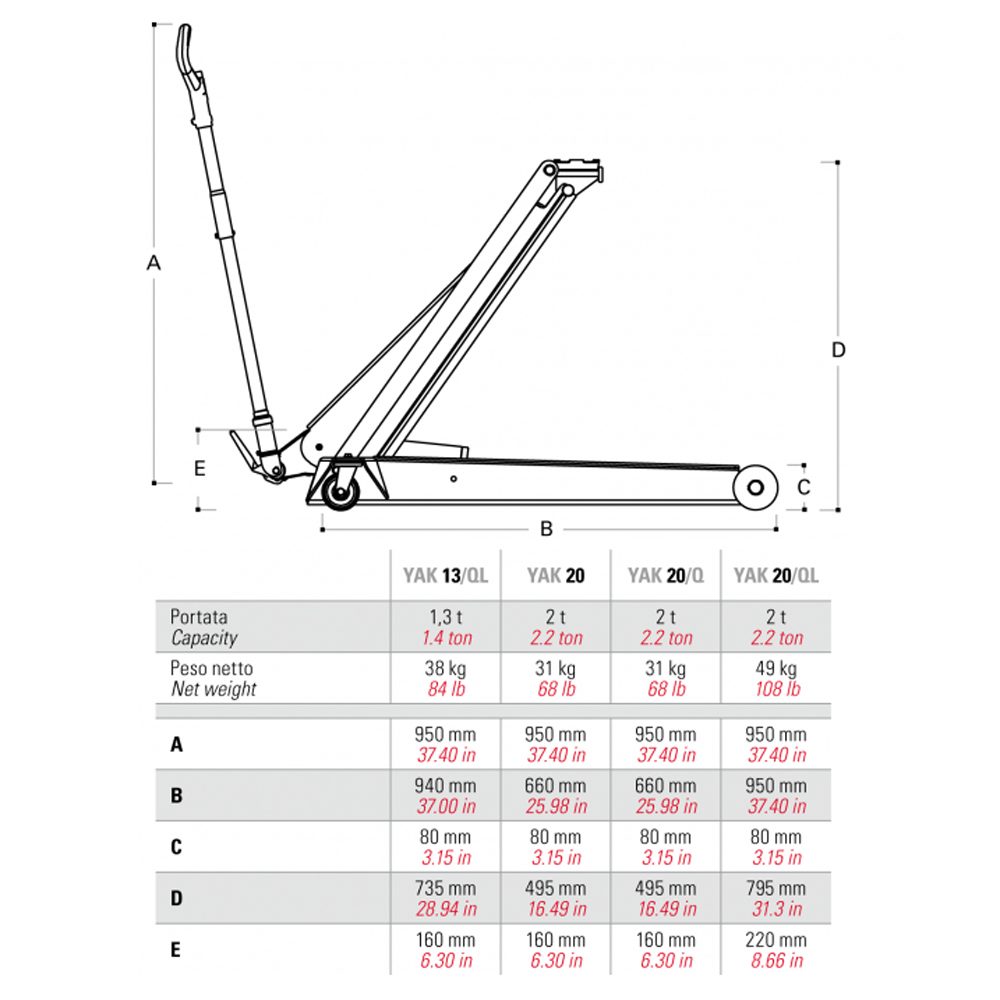 Cattini/YAK hydraulische 2-tons krik voor personenwagens en lichte bedrijfswagens.