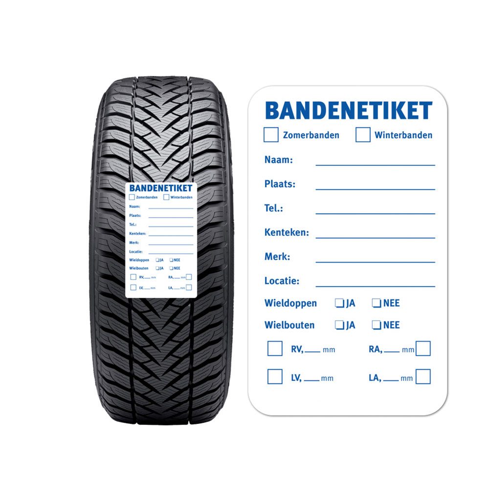 Universeel beschrijfbare bandenlabels voor opslag van zomer- en winterbanden.