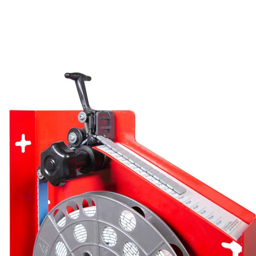 Eco Wielgewichten cutter inclusief standaard, een kleefgewichten rol houder met geïntegreerde snij-inrichting. Geschikt voor de Rema Tip Top Kleefgewicht rollen 6kg (1566053 & 1566055) en 5kg (1566080 & 1566081).