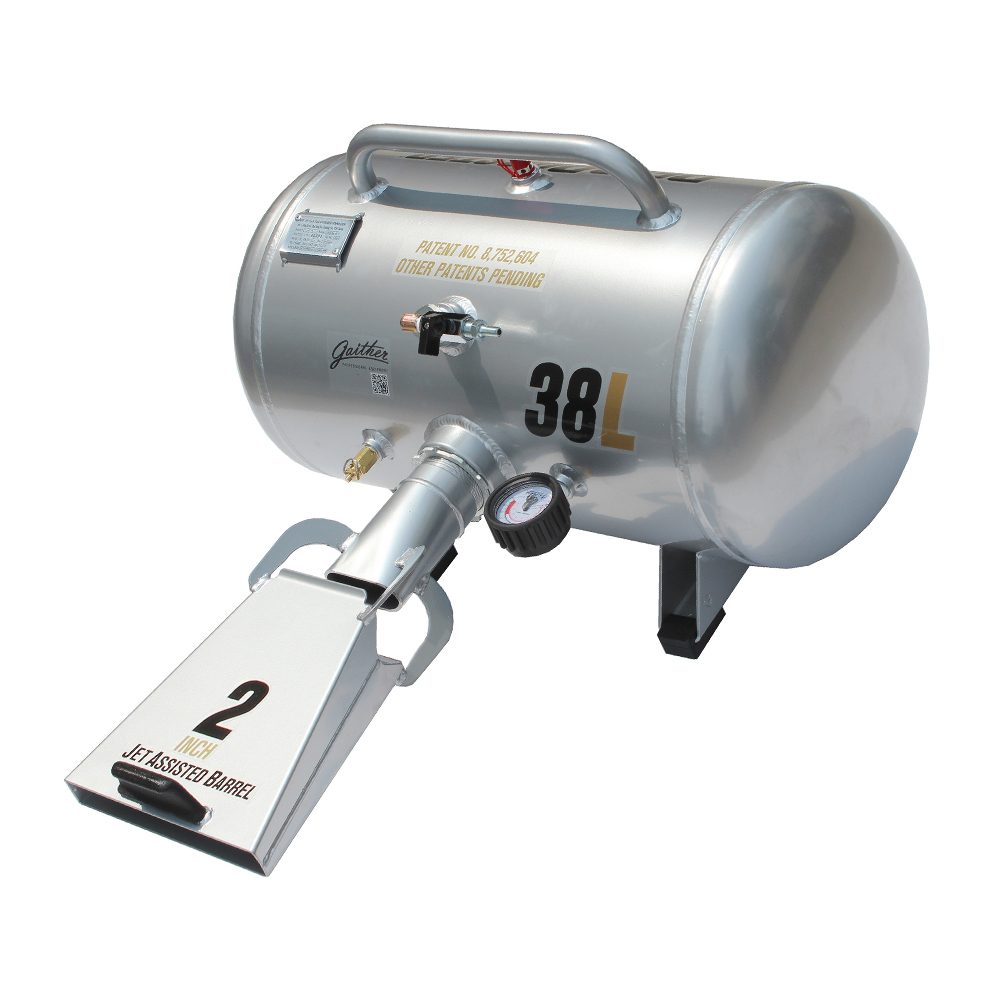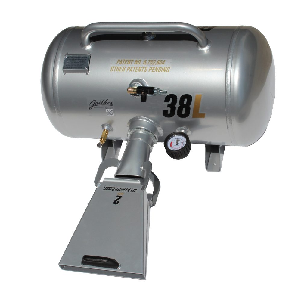 Gaither Bead Bazooka beschikt over een tank van 38L en daardoor uitermate geschikt voor o.a. landbouwvoertuigen. De Bead Bazooka kan eenvoudig weer gevuld worden via de persluchtaansluiting.
