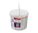 Het balanceerpoeder wordt met behulp van de maatschap in de ongemonteerde band geschept. Gebruik de bijgeleverde maattabel om de juiste hoeveelheid te bepalen. Na een korte rijafstand verspreidt het poeder zich vanzelf in de band.