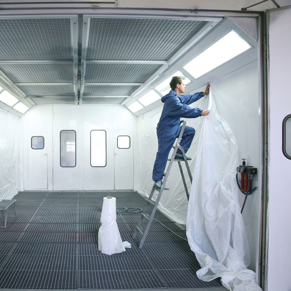 Horn & Bauer Verfhechtende cabinefolie met plakband, om cabinewanden te beschermen tegen verfnevel.