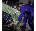 Voertuigen kunnen direct vanuit de dispenserdoos worden bedekt, wat tijd bespaart