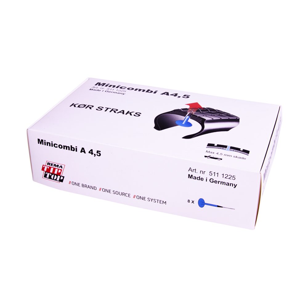Rema Tip Top Minicombi A4,5 navulset, een combinatie van pleister en plug voor spijkergatreparaties in het loopvlak van de band.