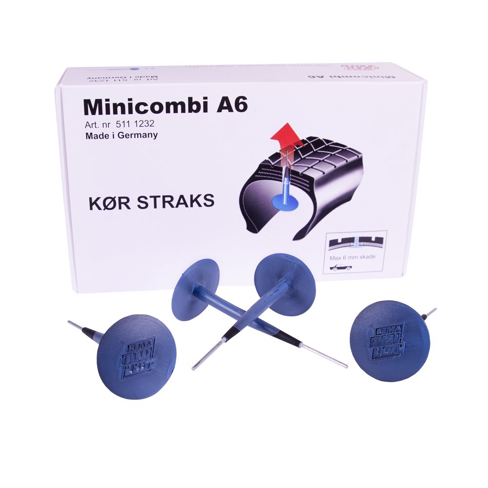 Rema Tip Top Minicombi A6 navulset, een combinatie van pleister en plug voor spijkergatreparaties in het loopvlak van de band.