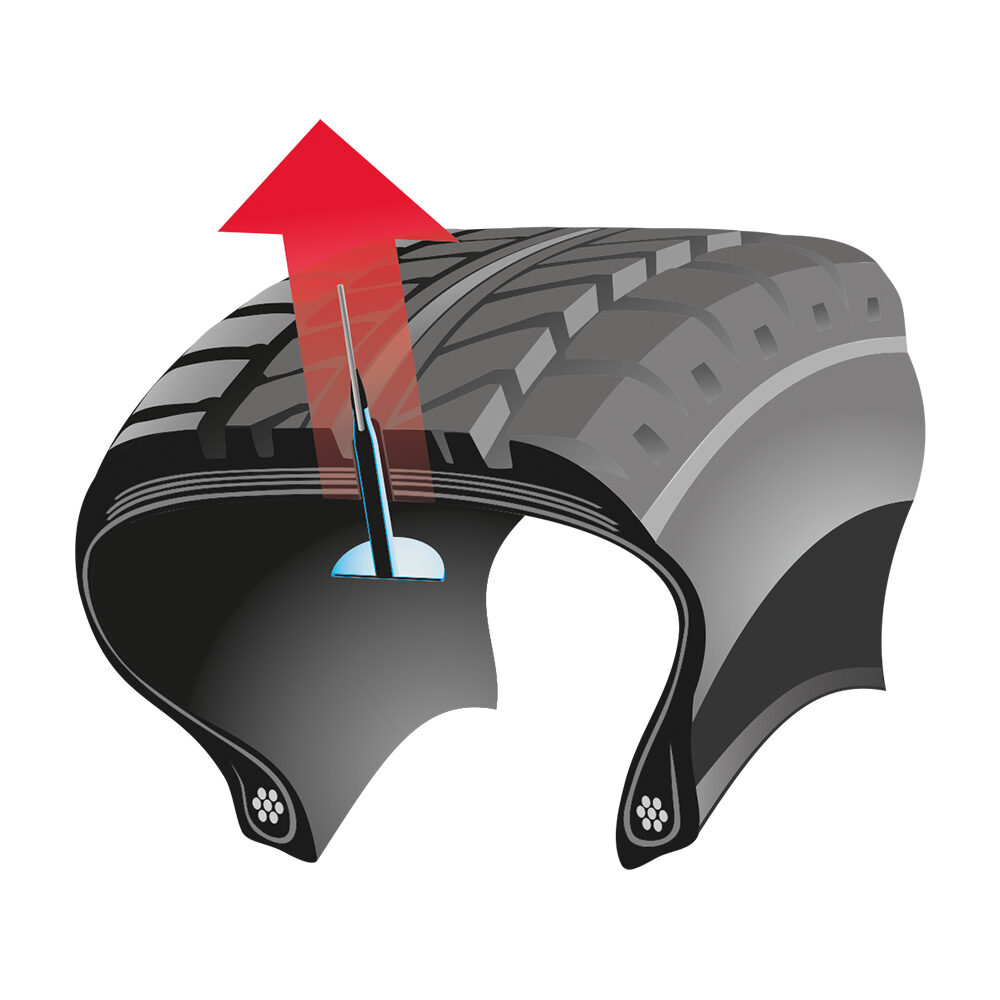 Dankzij deze combinatie repareert u zowel de binnenkant van de band als het schadekanaal.