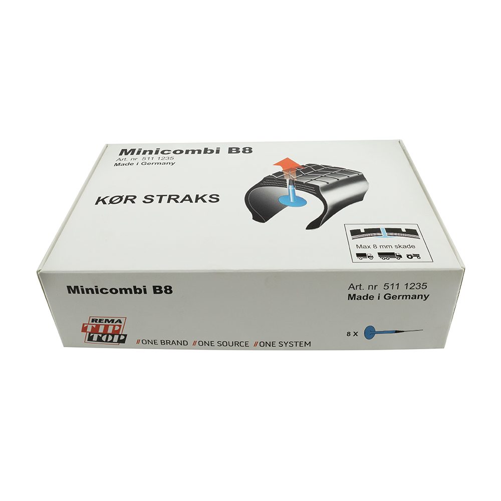 Rema Tip Top Minicombi B8 navulset, een combinatie van pleister en plug voor spijkergatreparaties in het loopvlak van de band.