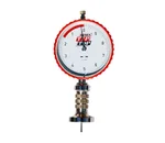 De meter wordt met zijn ronde voet op de band geplaatst, zodat de as met het contactpunt aan het uiteinde in het loopvlak dringt. De wijzer geeft direct de juiste waarde aan.