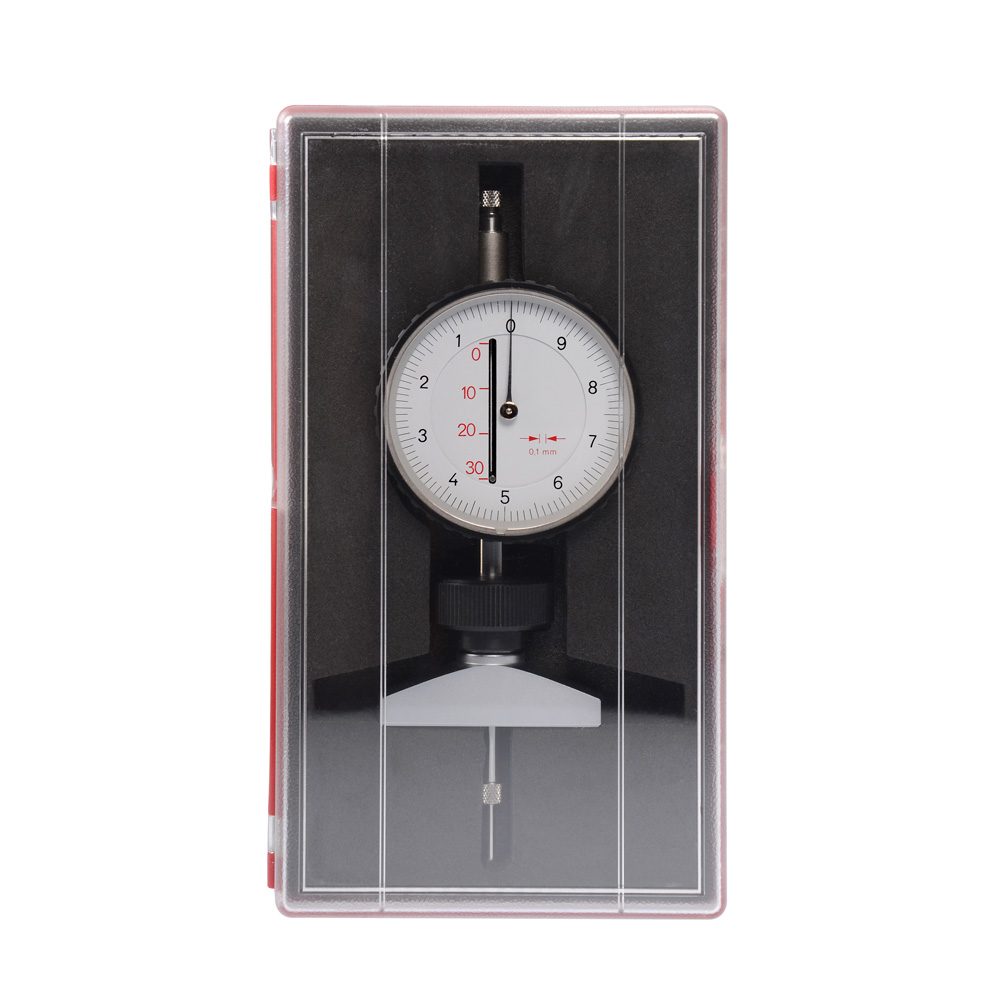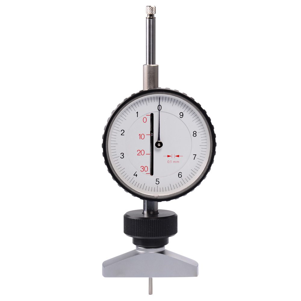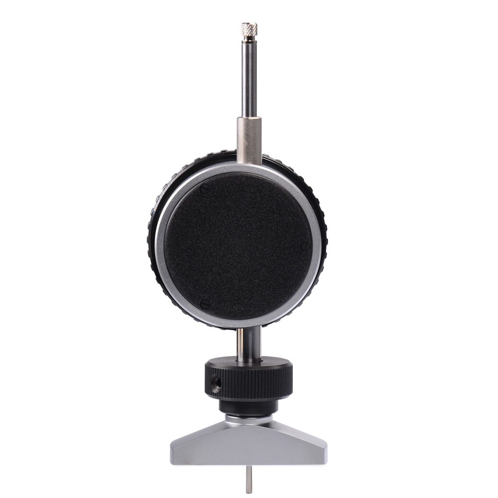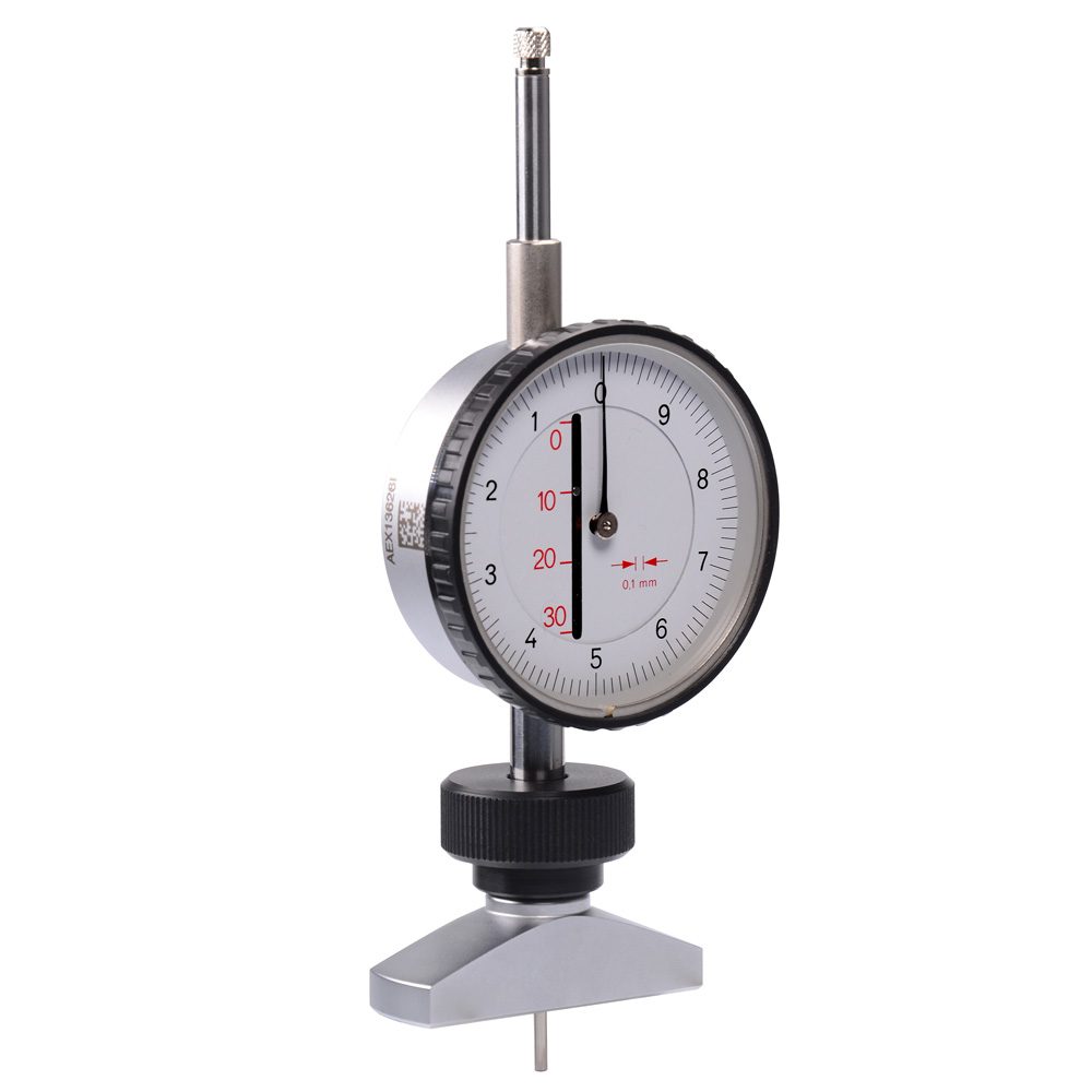 De meter wordt met zijn brede voet op de band geplaatst, zodat de as met het contactpunt aan het uiteinde in het loopvlak dringt. De wijzer geeft direct de juiste waarde aan.