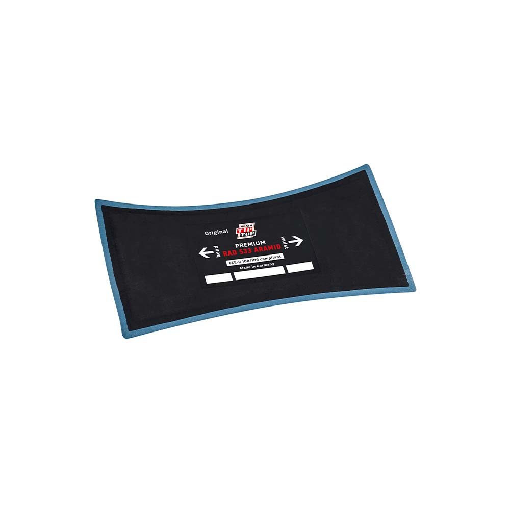 De centreerpleisters van de Rema Tip PREMIUM Line zijn de nieuwe generatie bandreparatiepleisters. De RAD pleister 533 aramid PREMIUM Line biedt een duurzame reparatie aan de wang, schouder en het loopvlak van een radiaal band. De verbeterde rubberen hechtlaag bestaat uit twee rubberen componenten en is daardoor bimodaal. Hierdoor zijn de RAD pleisters PREMIUM Line nog sterker, soepeler en beter hechtend. Bij een juiste toepassing biedt deze pleister een zeer duurzame reparatie. In de middelste laag van deze pleister zitten sterke aramide koorden verwerkt. Dit vergroot de kracht die de pleister kan verdragen bij banden met een lagere bandenspanning. Hierdoor is deze radiaal pleister zeer geschikt voor truck-, landbouw- en grondverzetbanden. Dankzij de unieke hechtlaag is deze centreerpleister geschikt voor zowel koud- als warmvulkanisatie. Maak bij het kiezen van de juiste maat pleister gebruik van de schadetabel, deze is te vinden onder het kopje downloads bovenaan de pagina. Alle Rema Tip Top PREMIUM Line centreerpleisters worden geproduceerd volgens de Europese veiligheidsrichtlijnen (ECE-R 108/109). Deze centreerpleister kan worden gebruikt in combinatie met Rema Tip Top Speciaal cement blauw (5159405) en Rema Tip Top Speciaal cement blauw fast dry (5159570) voor koudvulkanisatie en Rema Tip Top HR solutie cfk-vrij (5159224) voor warmvulkanisatie.