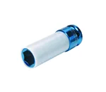 SW-Stahl Lange krachtdop in een kunststof beschermhuls. Met deze krachtdop kunt u wielbouten of wielmoeren van personenwagens of motorfietsen demonteren met een 1/2" slagmoersleutel.