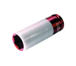 SW-Stahl Lange krachtdop in een kunststof beschermhuls. Met deze krachtdop kunt u wielbouten of wielmoeren van personenwagens of motorfietsen demonteren met een 1/2" slagmoersleutel.