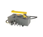 Deze hydraulische pers wordt geleverd in een koffer, inclusief voetpomp, slang, cilinder (90-118mm) en vier verlengstukken (10, 25, 50 en 85mm).